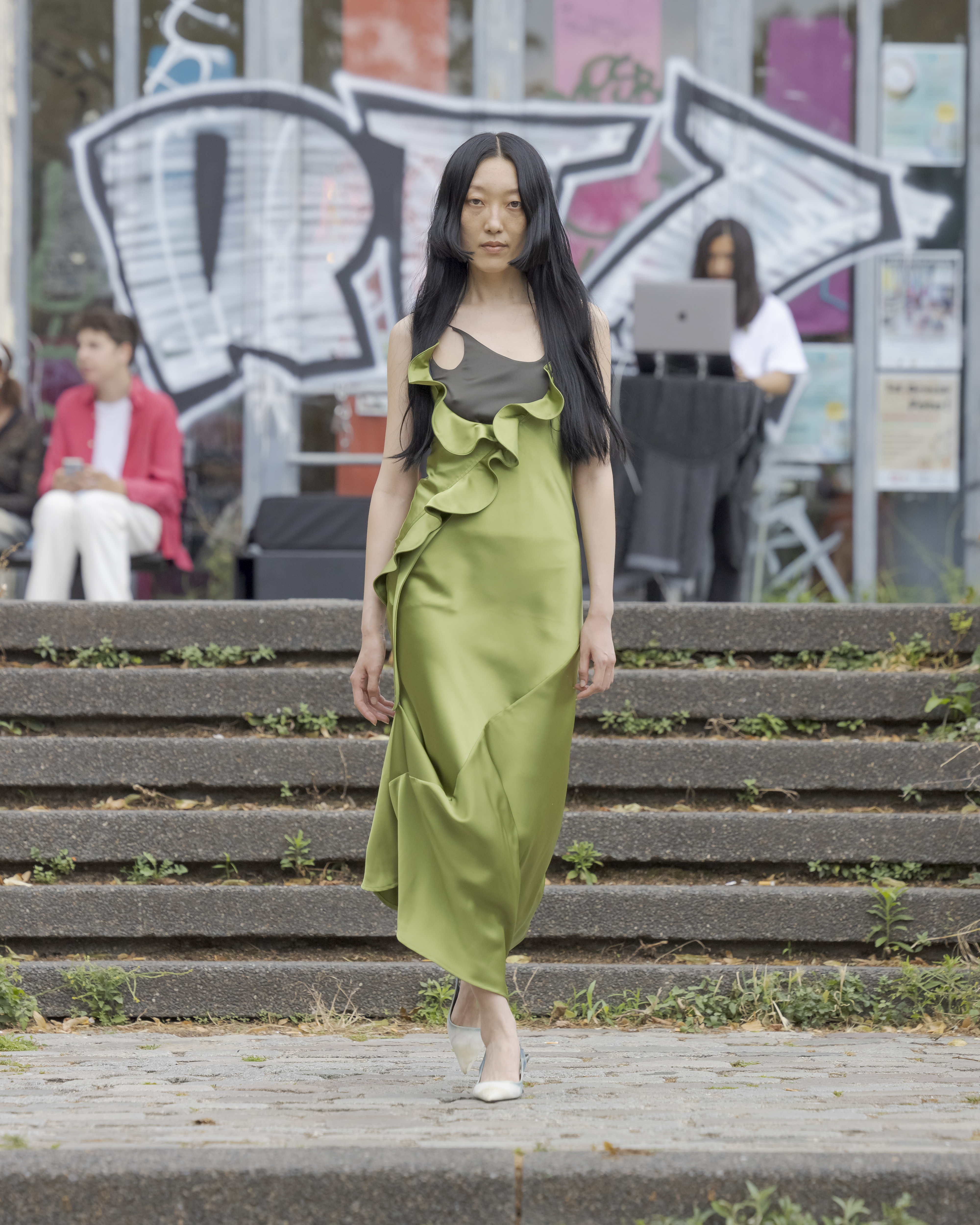 Riz Poli presented the SS24 collection “take a break at my secret garden” during the men’s Paris Fashion Week. Duality was a topic of importance this season as the brand’s aim was to give multiple perspectives on the garments. The location of the show, the Parc de Belleville underlines the idea of duality: raw and wild on the one hand and the nature with trees and grass on the other hand. The collection was full of airy dresses, ruffle blazers and raincoats once more showing the importance of duality. @riz_poli