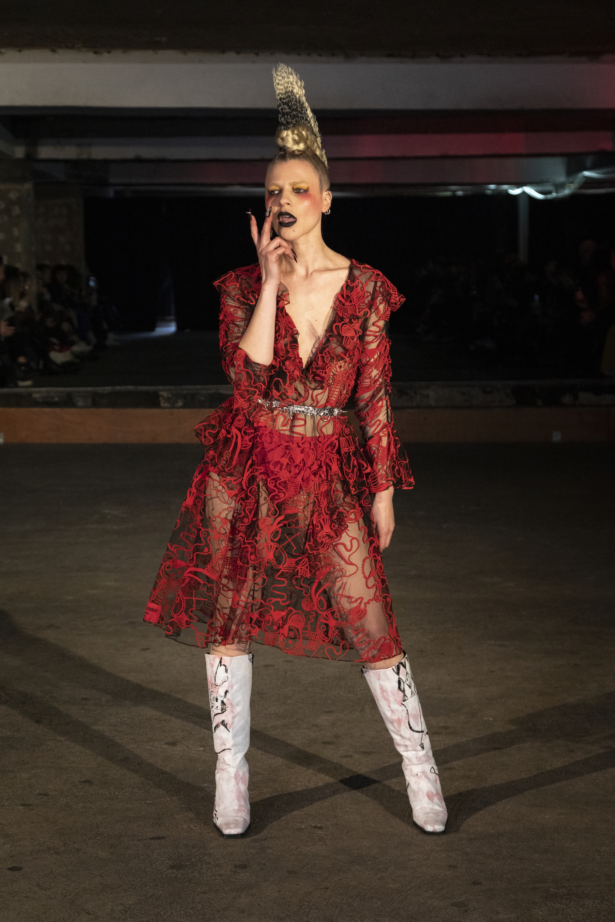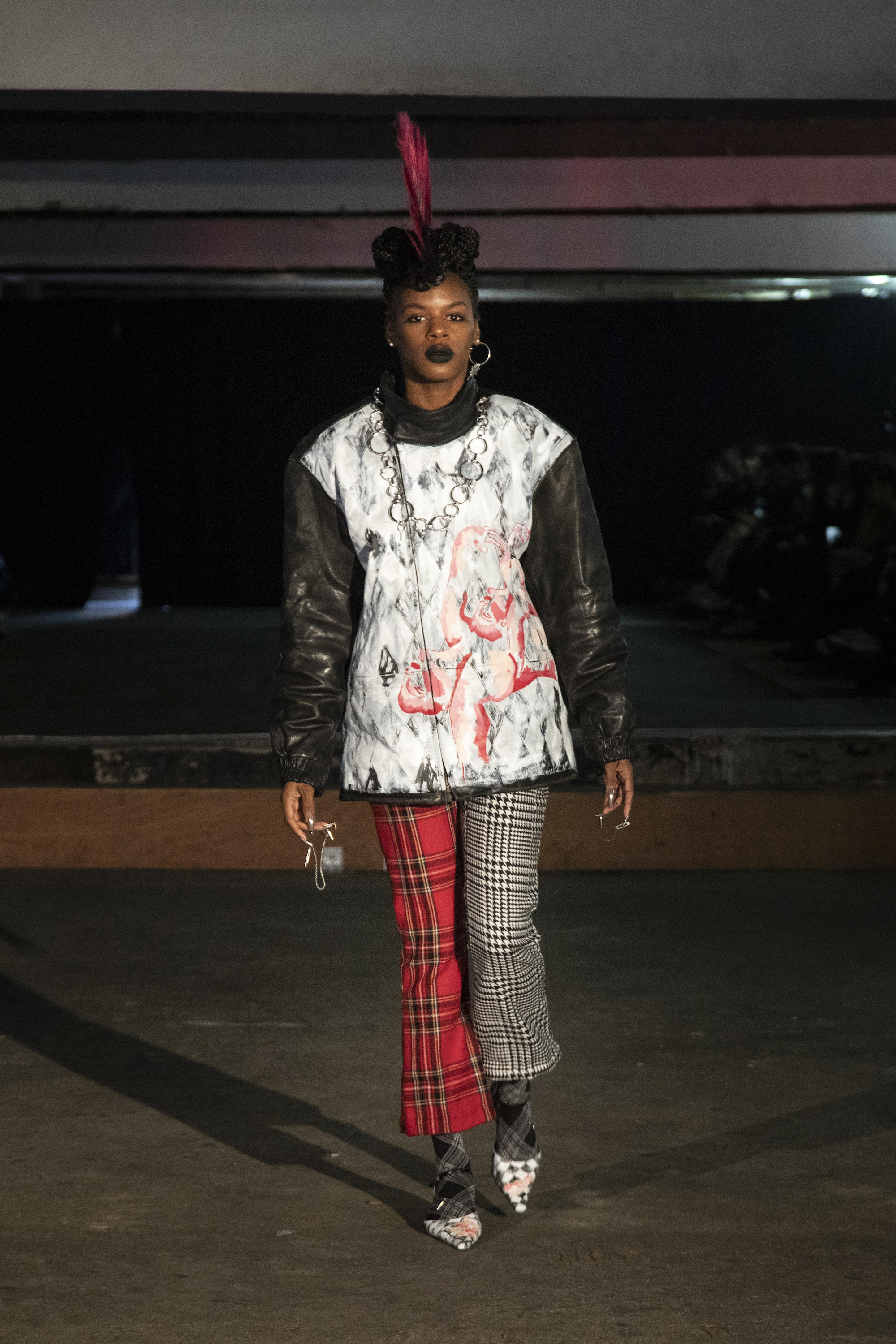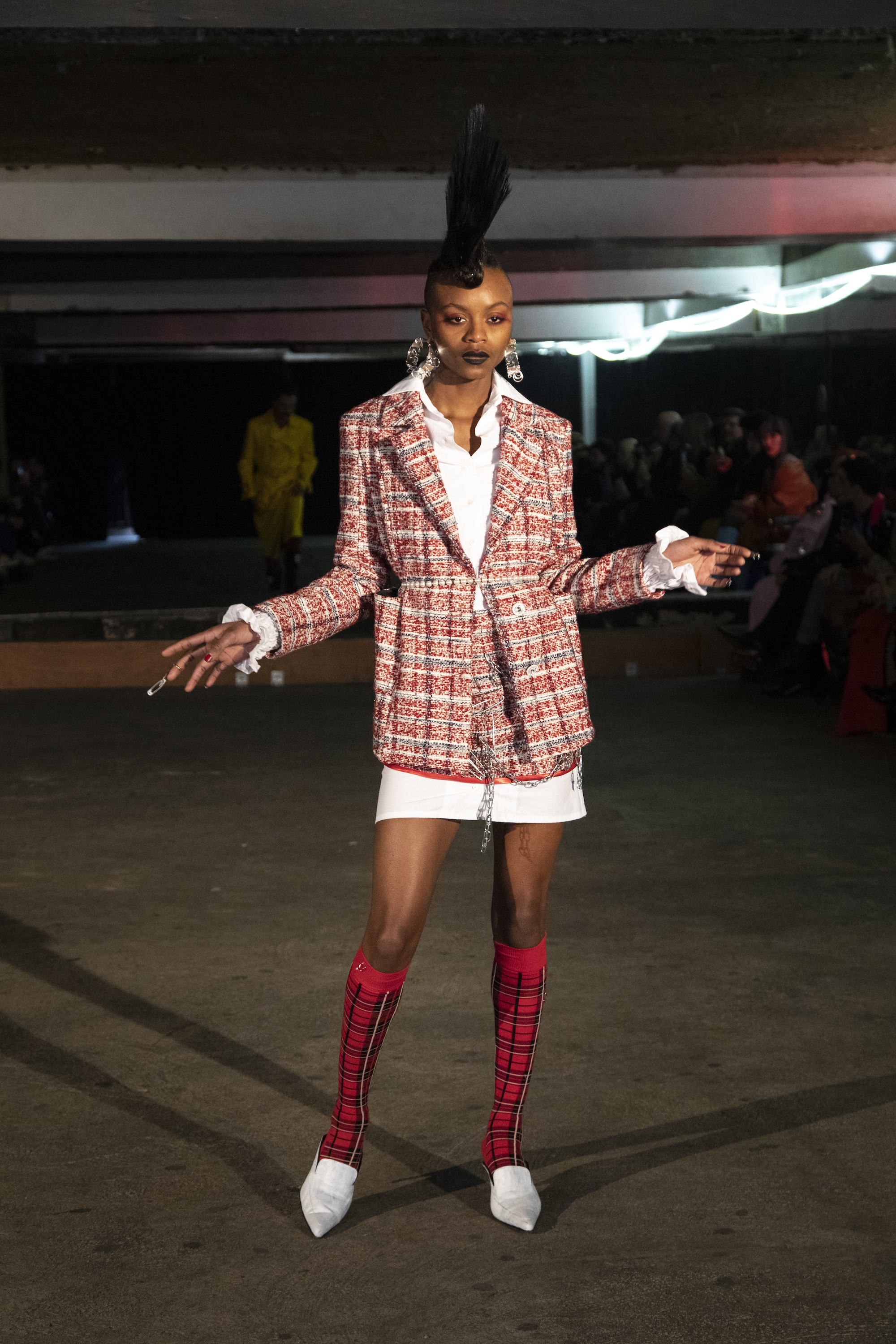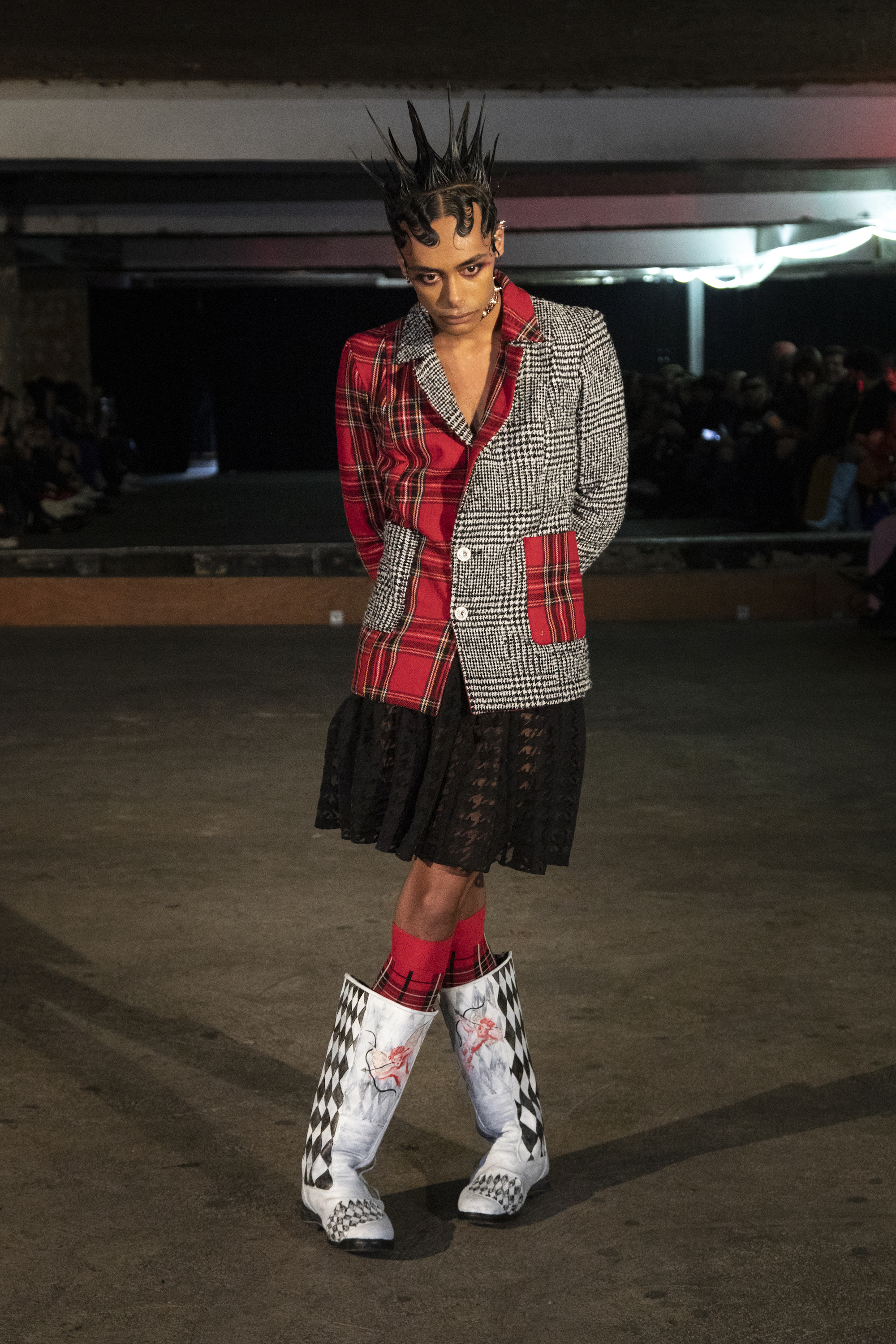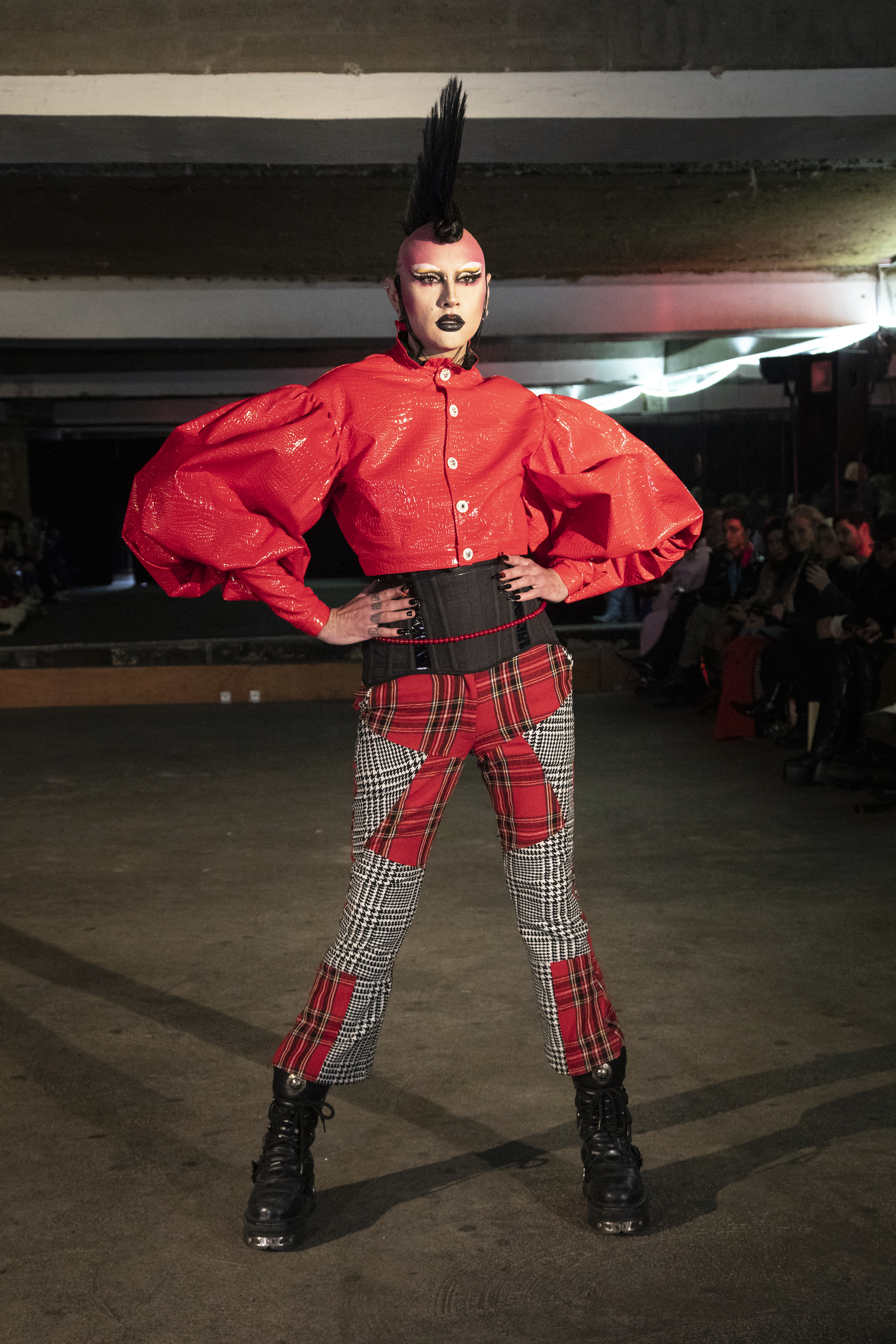Solène Lescouët presented their new FW 22 collection entitled “Punkettes Attack” during the womens RTW Paris Fashion Week. The collection is a summary of the core values of the brand and the designer behind it who finds inspiration in Rock & Roll, Pop, Punk and the 70’s with a twist: the designer merged the style of the Punks from the 70’s with the Renaissance movement. The result is a collection that proves that those two worlds can be combined and underlines the designers desire for freedom and self-expression. The garments feature the emblematic tartan fabric, but also vegan leather-like vinyl, velvet and tulle. @solenelesouet@faxionpr